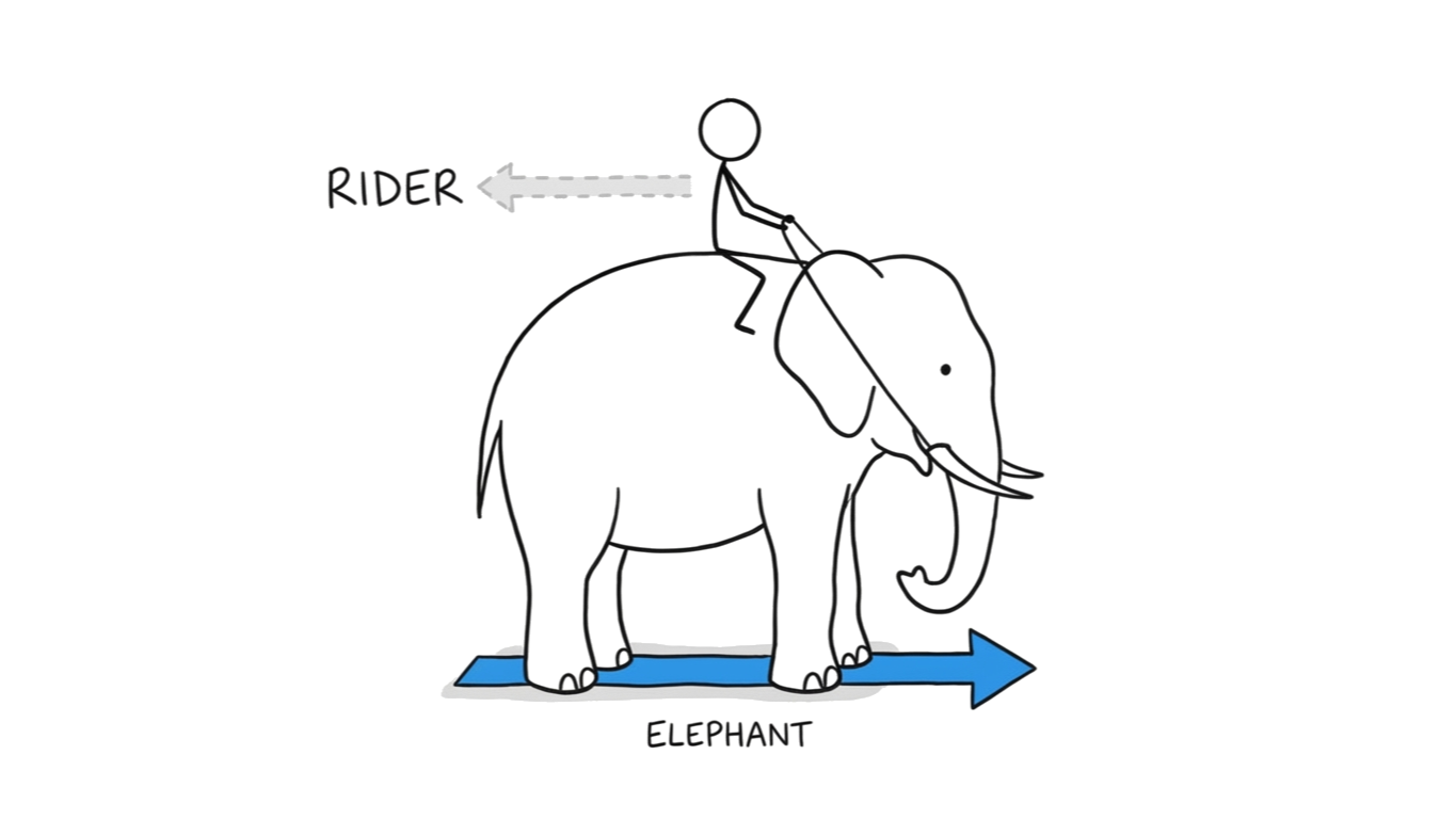 Jonathan Haidt offered a vivid image for the same split: a rider on an elephant. The rider thinks it's steering. It constructs narratives, explains decisions, articulates preferences. But the elephant is much larger. When rider and elephant disagree about where to go, the elephant wins.