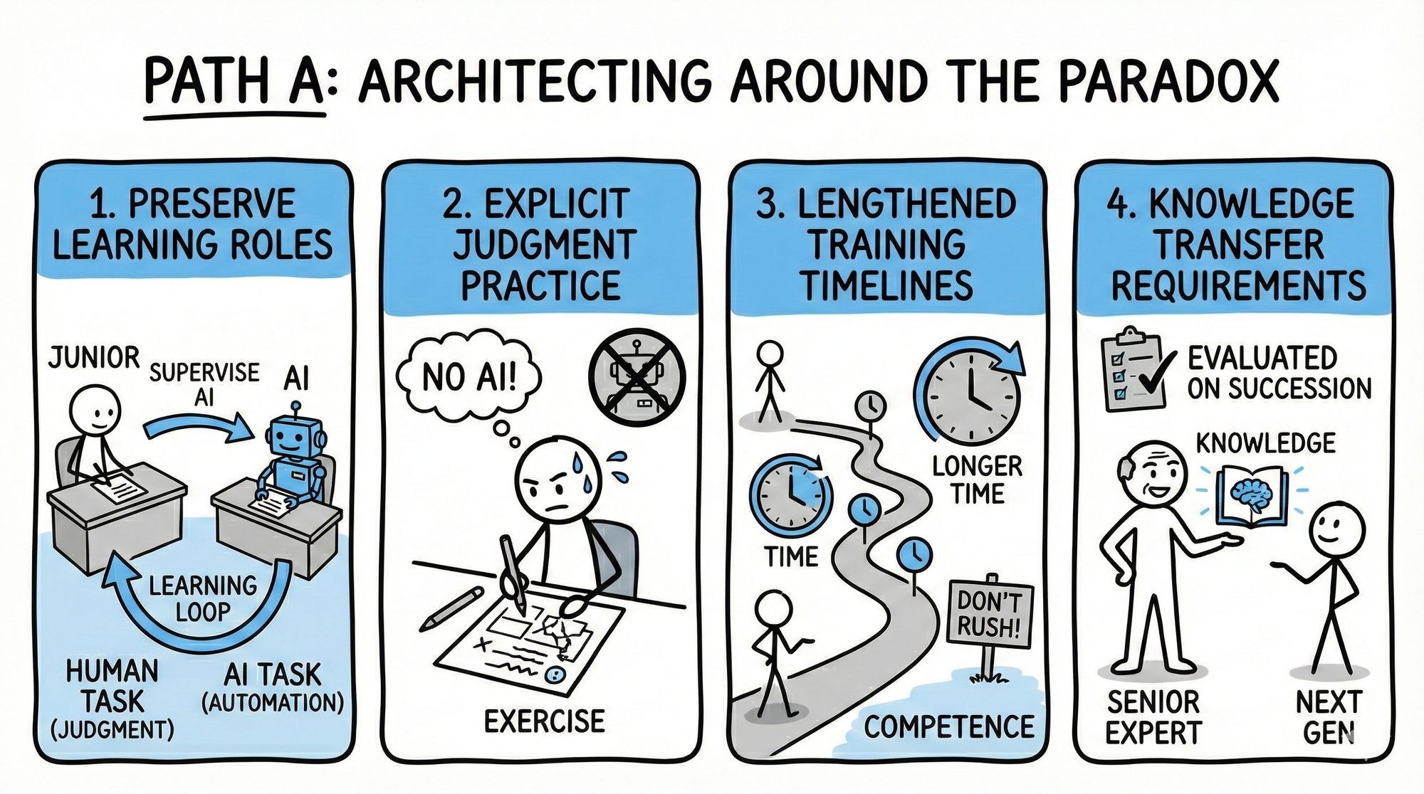 If market forces push everyone toward Path B (automate entry-level, defer the consequences), the industry-wide expertise collapse is coming. Smart organizations will build moats by being exceptions, but they can't fix the industry.