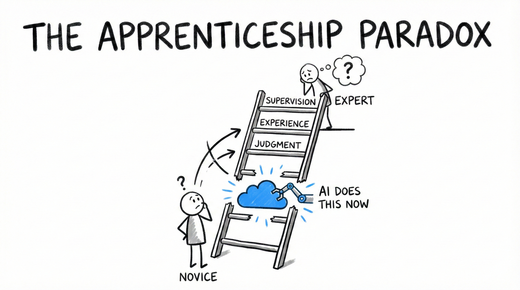 "Need experience to supervise AI. But AI eliminates the roles where experience is gained. That's not a paradox you solve with technology. That's a paradox you solve with intention."