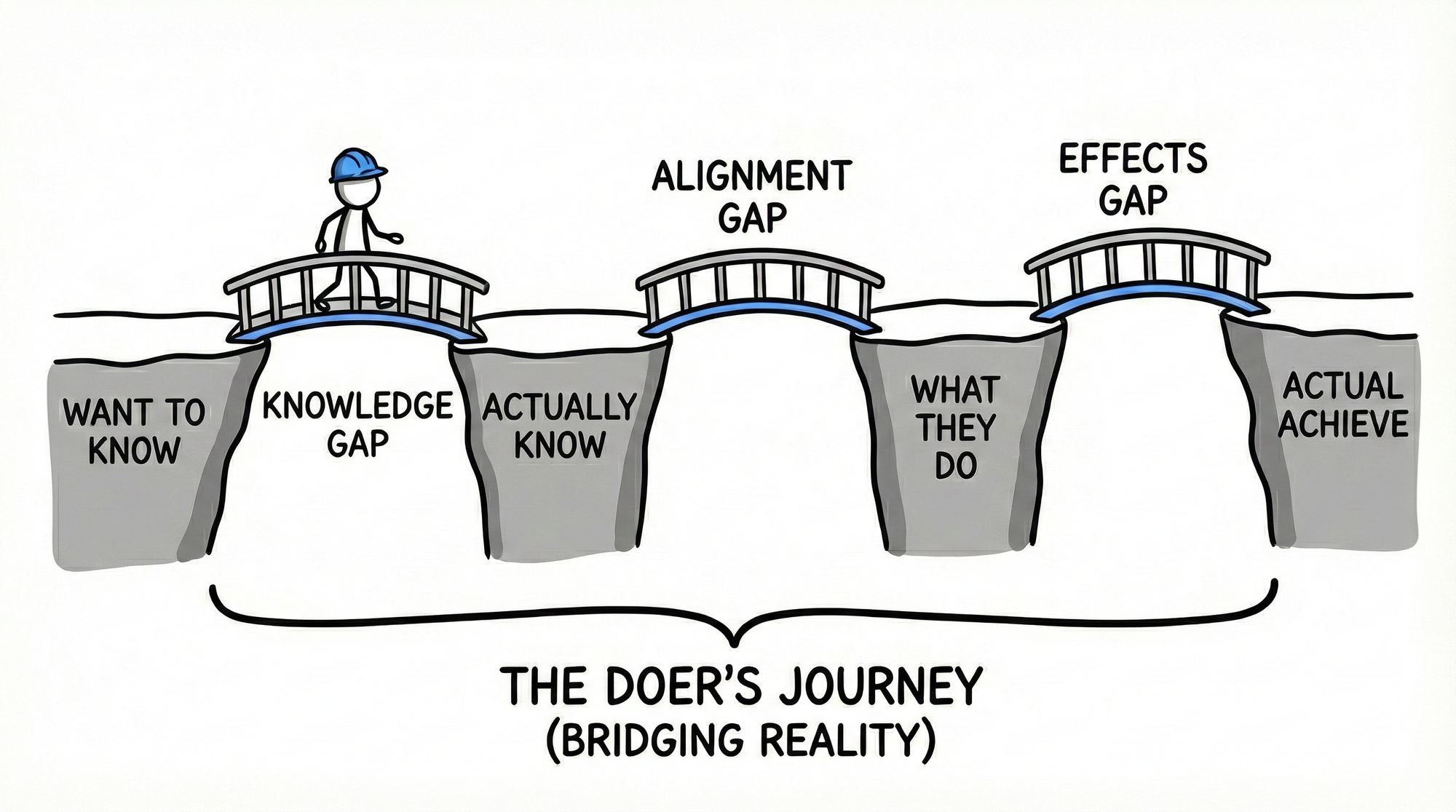 The knowledge gap teaches them what they don't know. The alignment gap teaches them how organizations actually behave. The effects gap teaches them how reality responds to their best-laid plans.