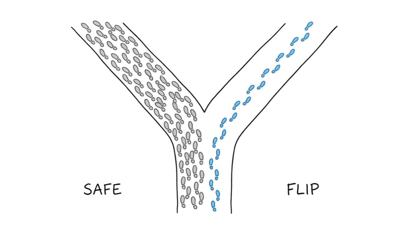 The flip isn't an intellectual problem. It's a courage problem. The companies that break through aren't smarter. They have someone willing to be wrong in public. Someone who'll sit in a room where every face says this is insane and say: run it.