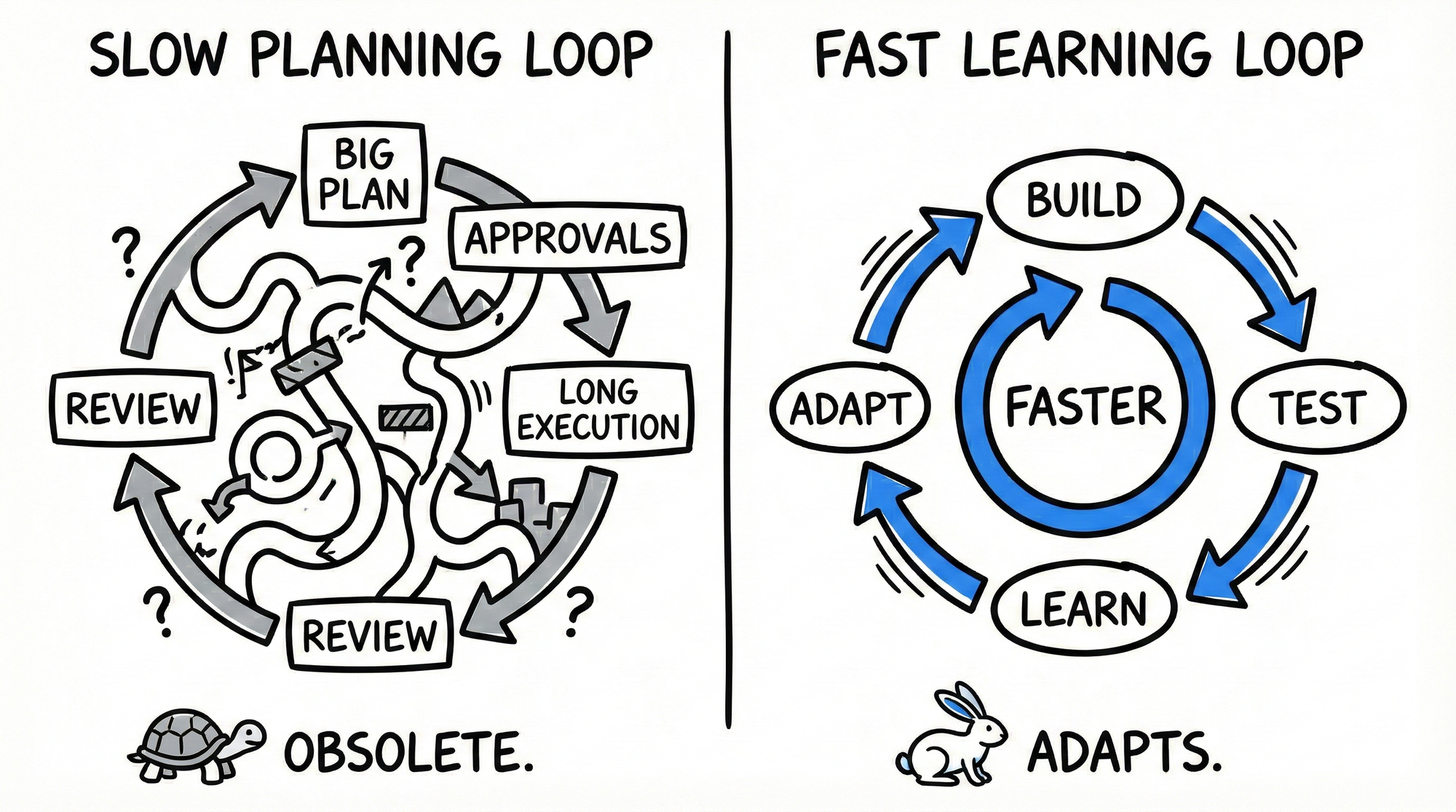 Speed of learning beats quality of planning. The organization with the fastest loop wins.