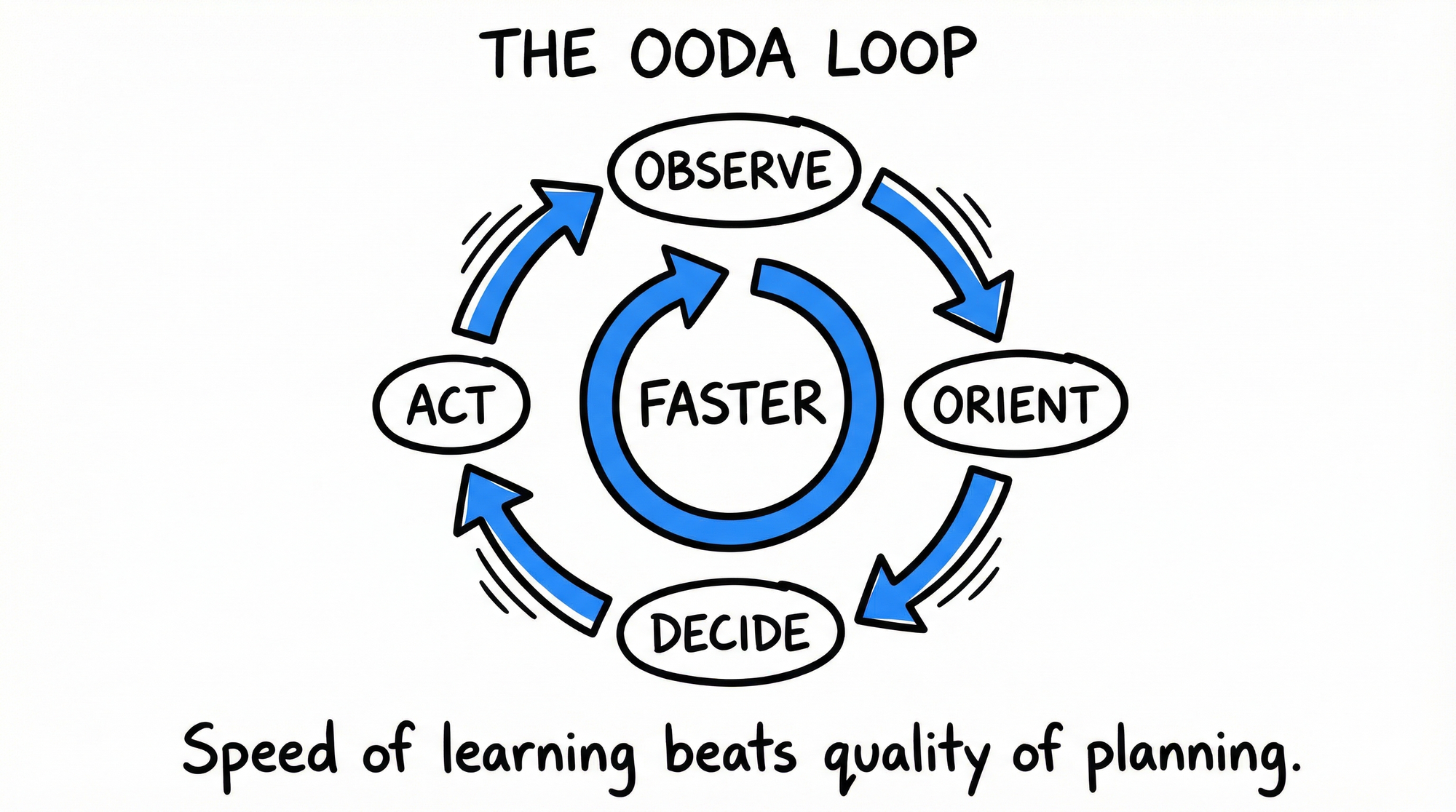 If you can cycle through observe-orient-decide-act faster than your environment changes, you adapt. If you can't, your plans become obsolete before execution completes.